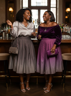purple and gray midi skirt