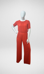 Coral Pleated Short Sleeve Wide Leg Jumpsuit