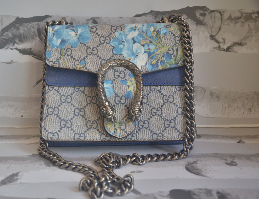Gucci Print with snake pendant blue velvet accent and blue flower printed on the flap